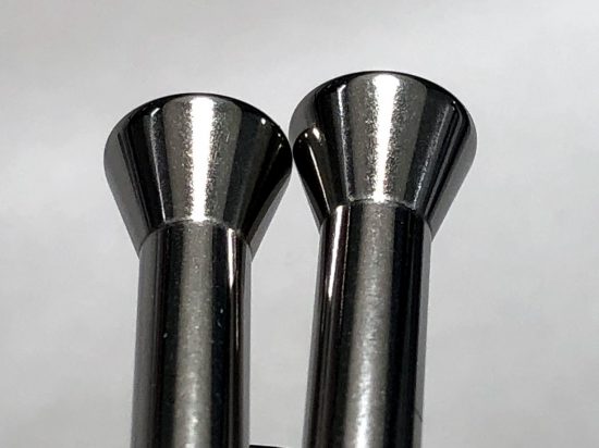 湿式バレルの仕上がり品は、表面を研磨+チップ等で叩かれてることもあり仕上がった後の肌面にキズ等が付きにくくなります。