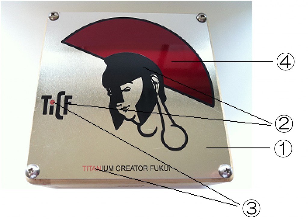 赤系電着  赤色のTITANの部分も②同様にレーザー加工を行い、クリアーコートを取り除き、