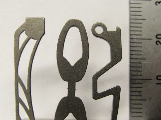 ホーム 加工事例 レーザー加工 レーザー切断加工 チタンクリエーター福井の加工事例 レーザー切断加工 1.0㎜以下の薄板のレーザ切断加工が可能です 画像のワークは、βチタン材の板厚1.0㎜、0.8㎜、0.6㎜をレーザ切断加工して、湿式バレルで処理した物です。 板厚0.5㎜の板材を、レーザ切断加工した実績が有ります。 優れたチタン加工技術 チタン素材 プレス・鍛造・圧延 スウェージング 切削・転造 曲げ・プレス曲げ・コイリング 表面処理 研磨 レーザー加工 接合 その他の技術 加工事例 設備紹介 お知らせ ブログ お問い合わせ チタン・チタン合金の素材選定からスウェージング加工、切削加工、転造加工、圧延加工、ろう付、チタン塗装・メッキ、プレス加工、部品製造・プレス加工などチタン加工おのことなら何でもご相談ください。 よくあるご質問 お見積り・ご相談フォーム