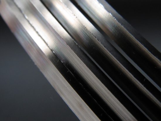 切削したてのエッジは、手が切れるほど鋭く、このままでは次の工程にまわす事が出来ません。