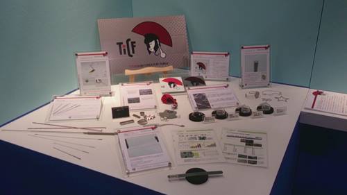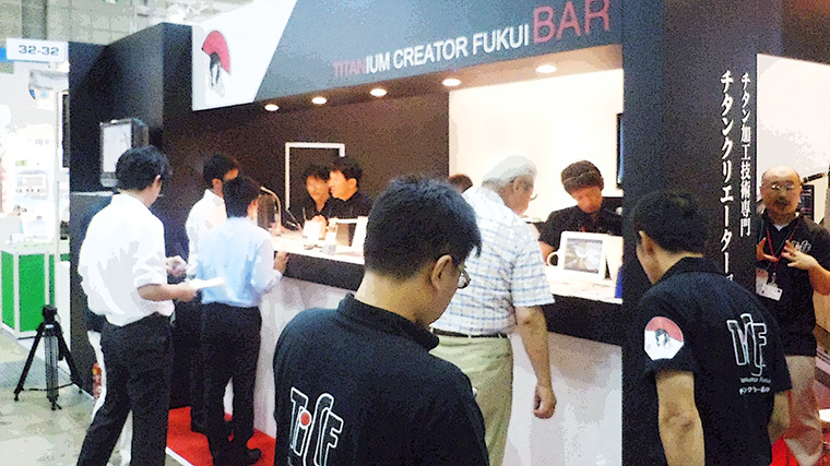 言葉で説明するのは難しいですが、上部は丸みがありフレームむき出しとなっており、黒い支柱にチタンクリエーターのロゴタイプが入っており、角にはモニターも設置されてイメージビデオを表示させることができるようになっています。